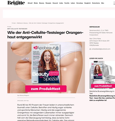 "Ein Produkt möchten wir Euch nicht weiter vorenthalten. Große Magazine, wie Stern, Für Sie, Petra oder Focus online, haben schon darüber berichtet. Das Produkt soll die innen gelegenen Fettpolster der Cellulite beseitigen. Nun denn, da lohnt es sich näher hinzuschauen."